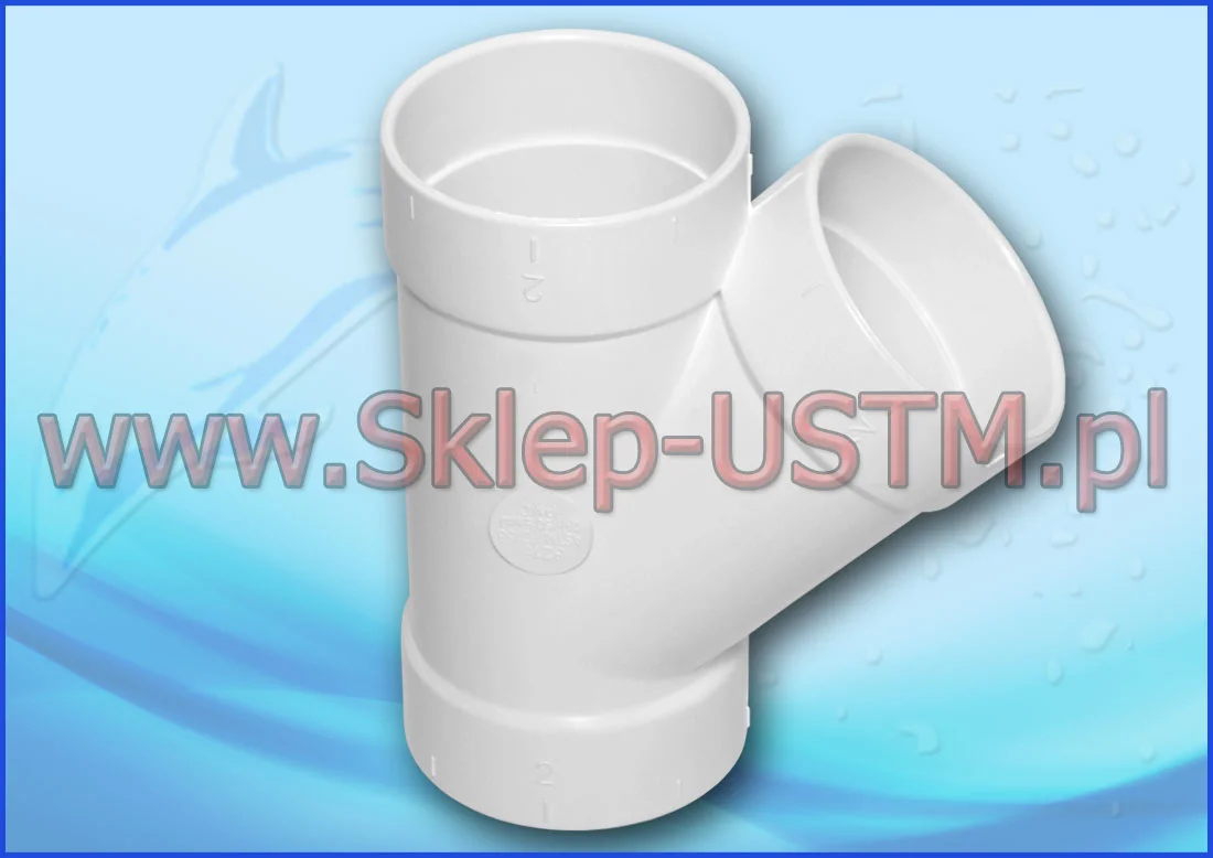 Trójnik 45 stopni, z podejściami kielichowymi, do instalacji centralnego odkurzania. Trójnik umożliwia z każdej strony na podłączenie rury lub innego elementu instalacji. Element instalacyjny powszechnie wykorzystywany przy wykonywaniu kompleksowych instalacji odkurzania.