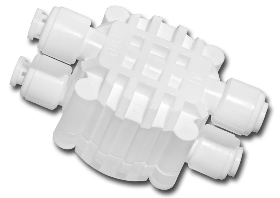 Zawór przełączający (odcinający) do filtrów odwróconej osmozy (nazywany również: zawór czterodrożny, zawór dwudrożny). Podstawowy element składowy filtrów osmotycznych, decydujący o wyłączaniu dopływu wody do filtra po napełnieniu zbiornika magazynującego wodę uzdatnioną (czystą).