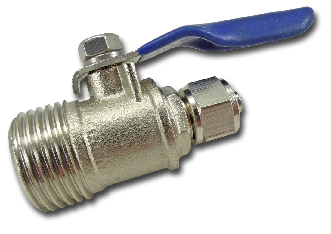 Metalowy zawór kulowy, stosowany w celu doprowadzenia niezależnego zasilania wodą, zamontowanego filtra wodnego (np. filtra odwróconej osmozy, filtrów przepływowych itd).