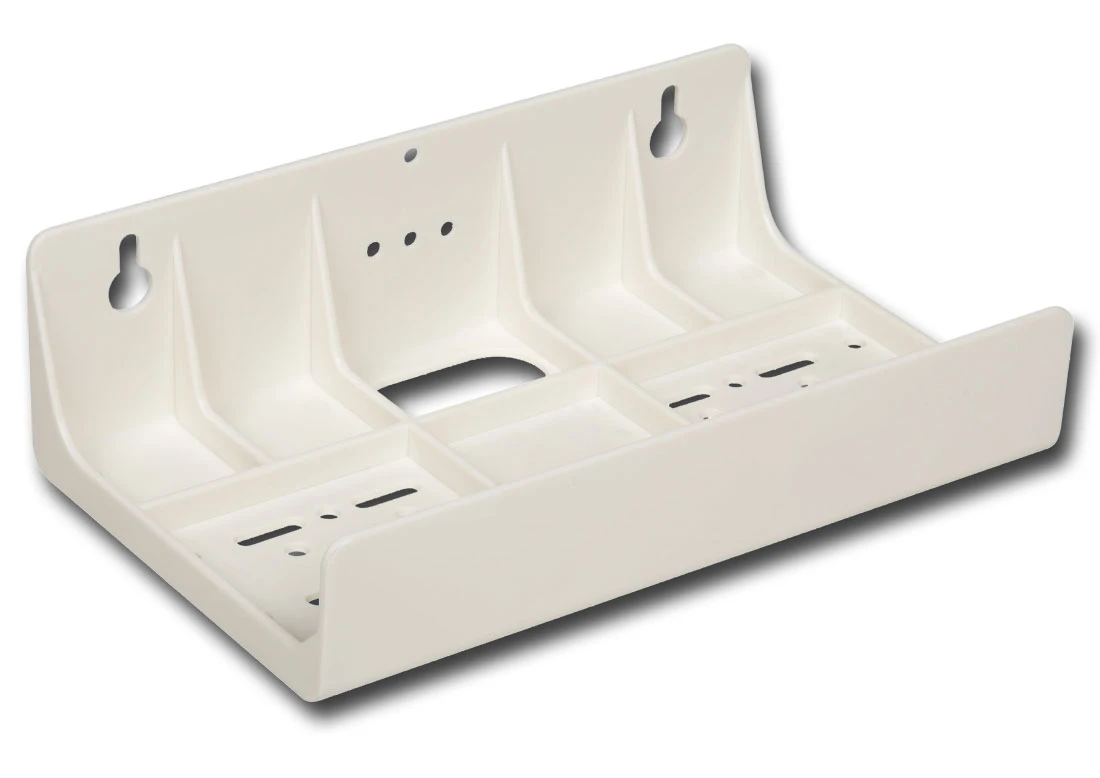 Plastikowa płytka montażowa na dwa korpusy filtrów wodnych. Z uwagi na znormalizowany rozstaw otworów montażowych, pasuje do większości korpusów 10 cali dostępnych w sprzedaży (również innych producentów).