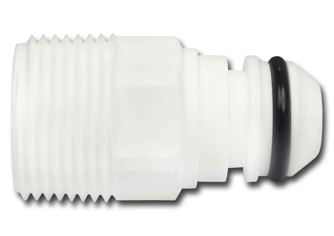 Podłączenie od strony korpusu na wcisk (część z o-ringiem wsuwana jest w głowicę i blokowana klipsem).